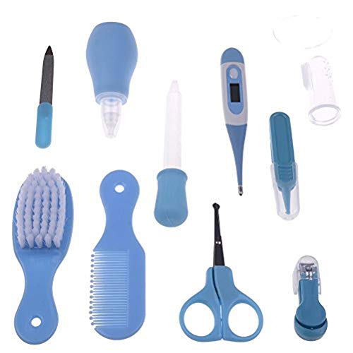 - Essential 10 pieces cover your needs for the first year as anew parent including a thermometer hairbrush hair comb nail clippers nailscissors nasal aspirator nose cleaning tweezers medicine dropper nail fileand finger brush (Gum massager).