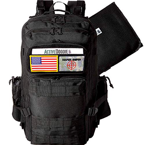 4.) Active Doodie Dads Diaper Bag Backpack Waterproof Tactical Style Baby Bag for Men Stroller Straps Changing Pad Military Inspired (Diaper Sniper Velcro Patches Black Large)