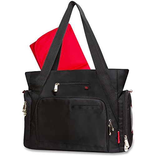 For the stylish mom on the go the Deluxe Fashion Diaper Tote is a perfect balance of fashion and function. Featuring the FastFinder Pocket System all of your key items are at arms’ reach on the exterior of the bag with easy to find labels. The insulated bottles pocket keeps bottles cold. The exterior wipes case can be accessed with a press of a button so you can grab a wipe with one hand and hold onto baby with the other! The pacifier pocket can be easily wiped clean. And the diapers pocket is large enough for multiple changes. The labels also help secondary users locate and replace these essentials so they’re sure to be just where you left them…so you’ll have what you need when baby needs it! More Reviews On Amazon